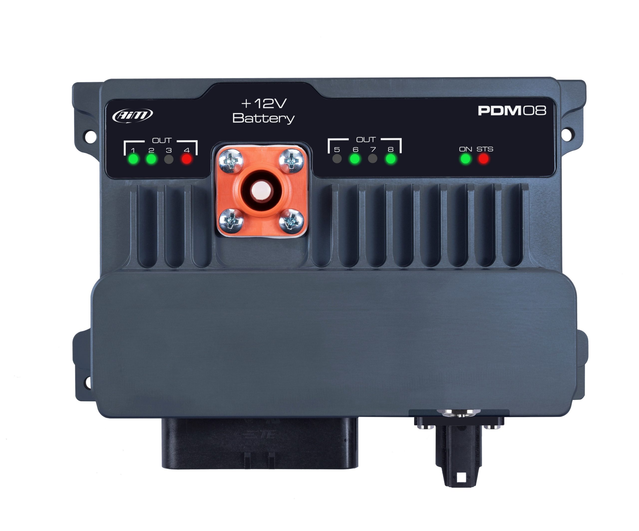 AiM se adelanta al futuro, presentando el PDM08. Nuestros PDM, alojados en una caja de aluminio Anodizado, están diseñados para gestionar los rigores del automovilismo e incluyen un data logger profesional completo. Con los PDM de AiM podrás gestionar todas tus necesidades de potencia eléctrica de tu vehículo además de proteger tu instalación eléctrica de posibles corto circuitos, subidas inesperadas de tensión… Todo ello en muy poco espacio.