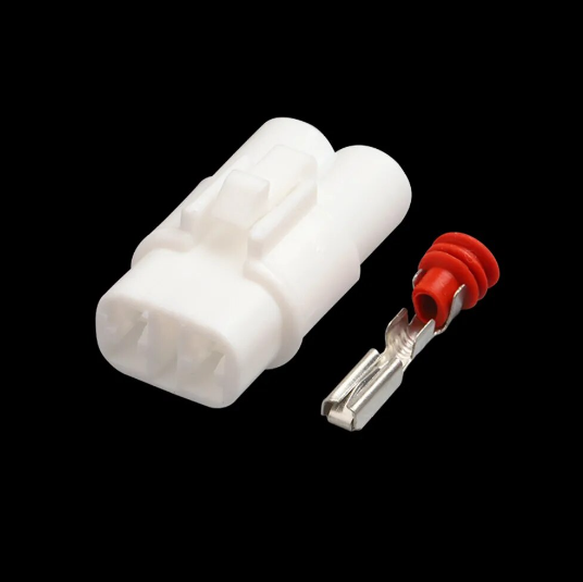 Conector Sumitomo MT090 de 2 pin hembra blanco, estanco, pensado para ambientes más extremos y extensamente utilizado en motos de fabricantes Japoneses.