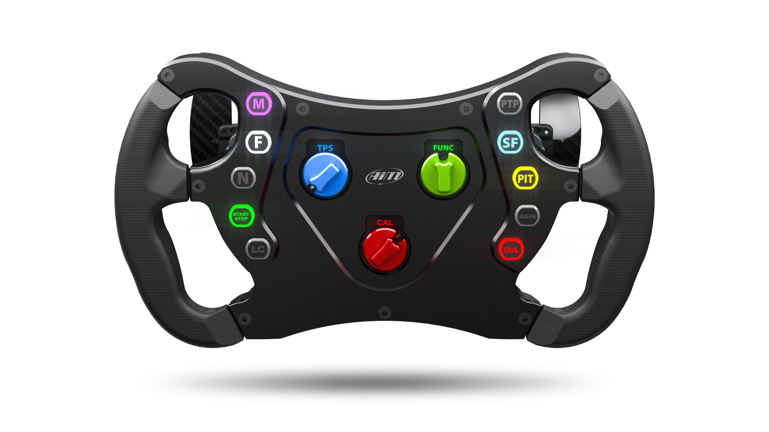 Backlight ConfigurableLos LED RGB se pueden gestionar a través de canales matemáticos según el estado de los pulsadores y/o la retroalimentación proveniente de dispositivos externos. Pueden ser fijos o parpadear a la frecuencia deseada y al nivel de luz preferido. Finalmente, las levas de cambio también cuentan con contactos libres en un pin dedicado del conector Autosport. |