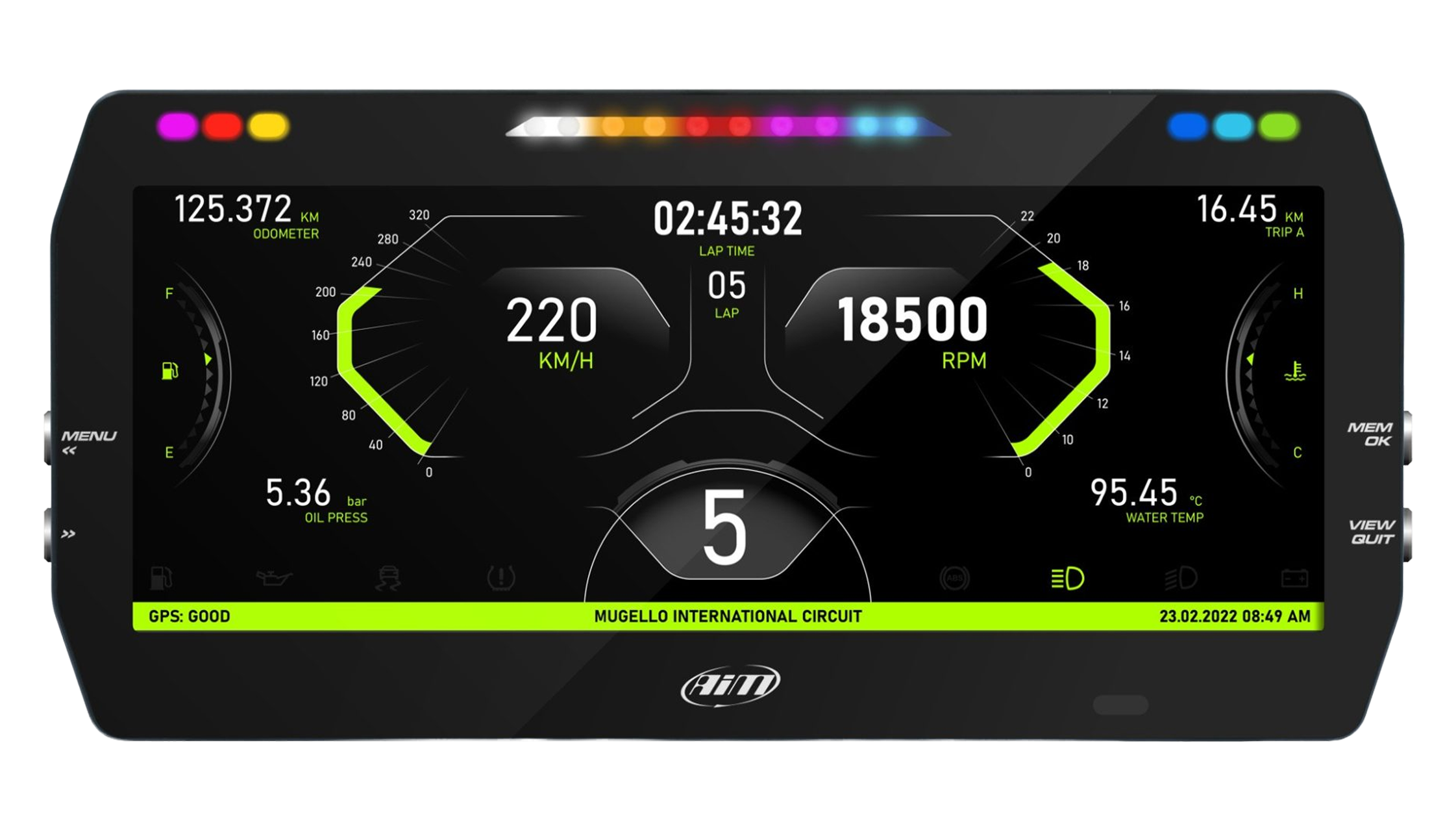 Presentamos el nuevo Dash de AiM MXT 1.3 Strada 10” de la máxima tecnología desarrollada por la marca hasta este momento. Diseñado para visualizar datos provenientes de su ECU. Una pantalla de alto contraste TFT de 10″, totalmente configurable con el Software Race Studio 3.